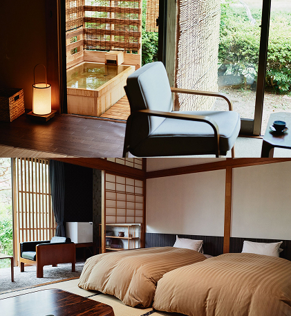 客房包括带私人露天温泉浴池的套房、带室内温泉的日式客房,以及保留了原有三木屋魅力的经典榻榻米客房。