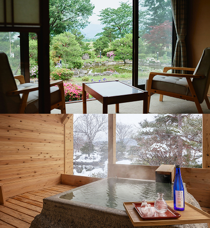 Savor local harvests and fine sake, soak in natural hot springs flowing from the source, and unwind in a garden visited by songbirds—a stay where you can feel the spirit of Yamagata through all five senses.