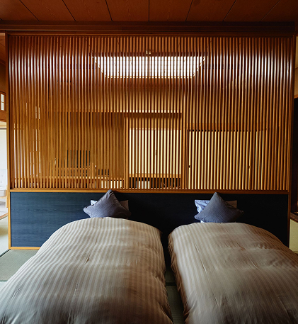 客房類型包括帶私人露天溫泉的套房、帶室內溫泉的日式客房,以及保留了原有「三木屋」風情的傳統榻榻米客房。